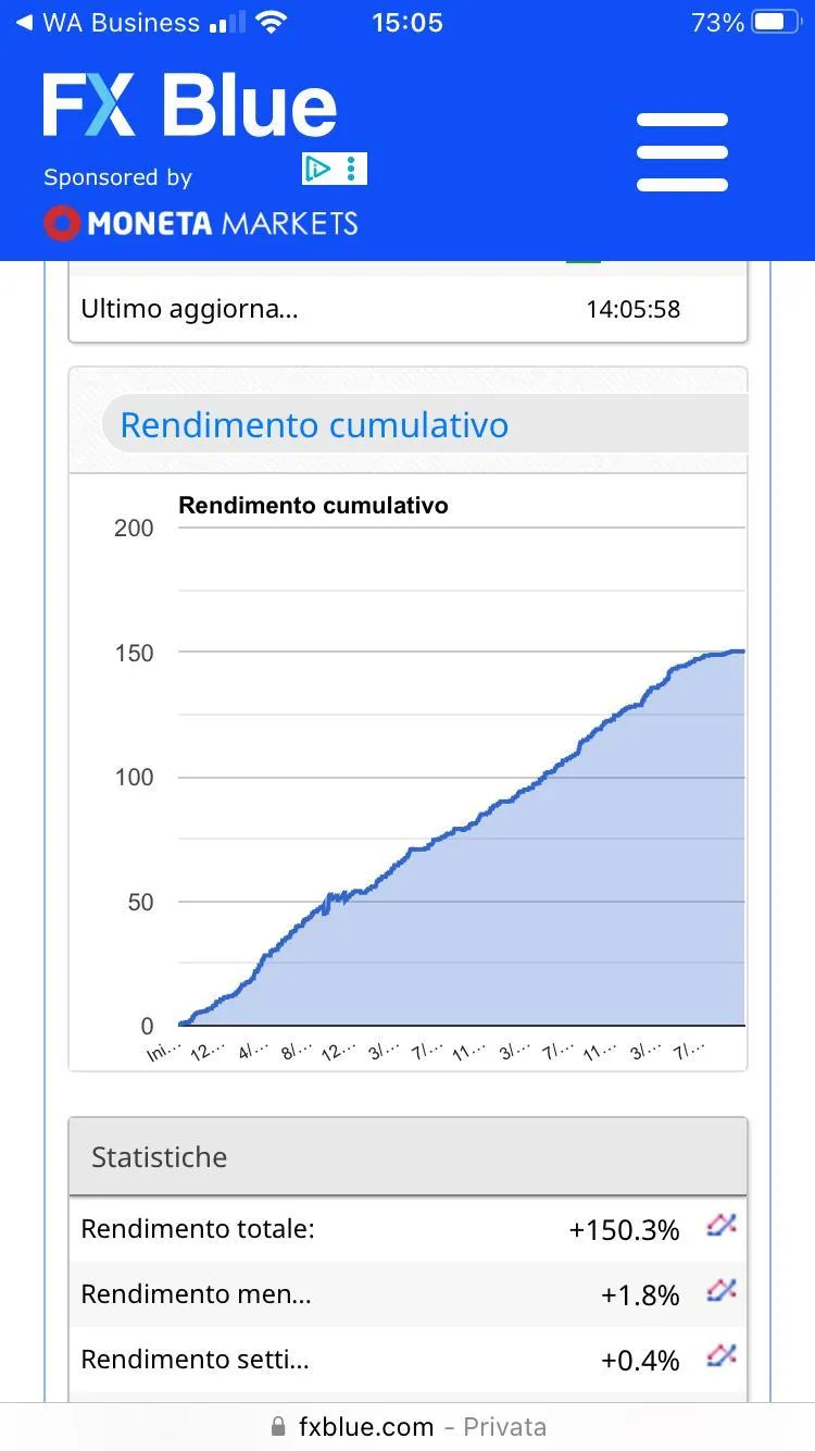 Report indipendenti e certificazioni FX Blue per dimostrare trasparenza operativa e risultati reali.